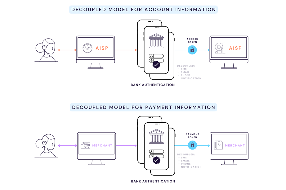 The advantage of bank-controlled SCA remains consistent with the redirect model but a better customer experience for mobile user's is achieved with decoupling.