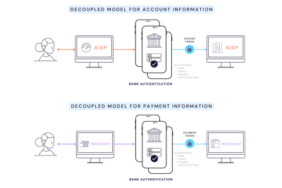 Similar to the redirect approach, the decoupled model prompts the PSU to authenticate using the bank's dedicated mobile app on a smartphone or other mobile device, regardless of whether the redirect is launched from a browser or the