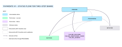 The following diagram shows the flow between payment initiation statuses for two-step banks.