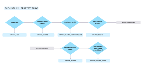 Please be aware that Token.io’s INITIATION_COMPLETED status does not guarantee funds transfer. It merely indicates/confirms the success of a payment initiation. INITIATION_COMPLETED means the final status on the bank’s side has been reached, regardless of whether or not this status is shared with Token.io, and there will be no further updates from the bank. For non-instant transfers, TPPs are strongly advised to look at the combination of statuses — Token.io’s status, as well as the final status from the bank — for a risk-based approach; otherwise, TPPs are advised to rely on end-to-end reconciliation for final status confirmation.