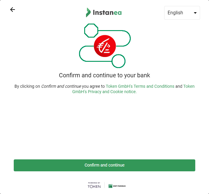 User -> Token.io - The user selects the bank. By selecting the bank, the user agrees to Token.io's Terms & Conditions and Token.io's Privacy Policy.User -> Token.io - The user confirms their choice of bank. By confirming the bank, the user agrees to Token's Terms & Conditions and Token's Privacy Policy.