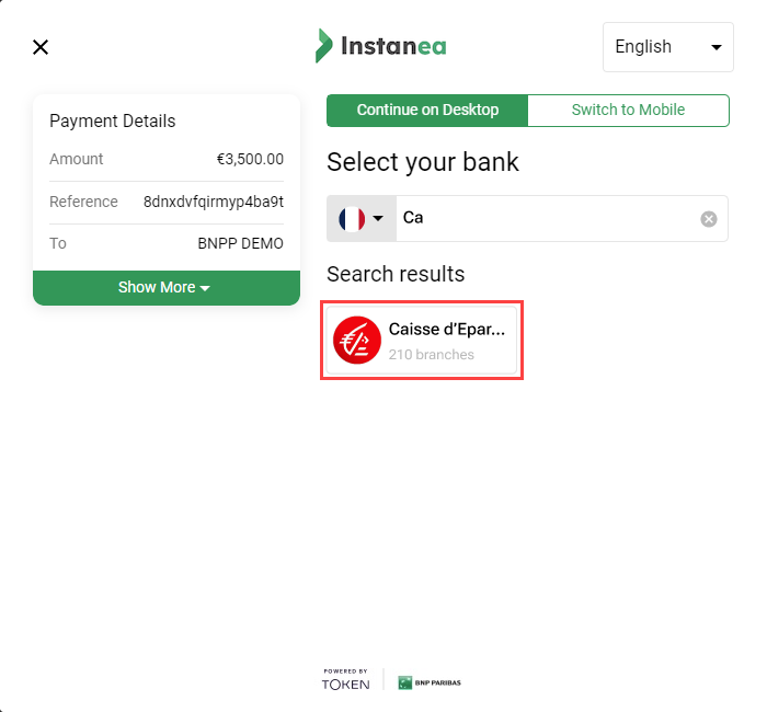 • Embedded (modal) integration - seamlessly integrates Token.io's HP functionality into your website by creating a Pay by Bank button for your checkout page, which then opens the HP in a modal window.