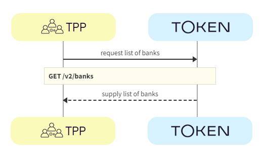 1. TPP -> Token.io - The TPP requests the list of banks from Token.io.