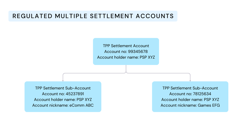 Unregulated multiple Settlement accounts for merchants (sub-TPPs)