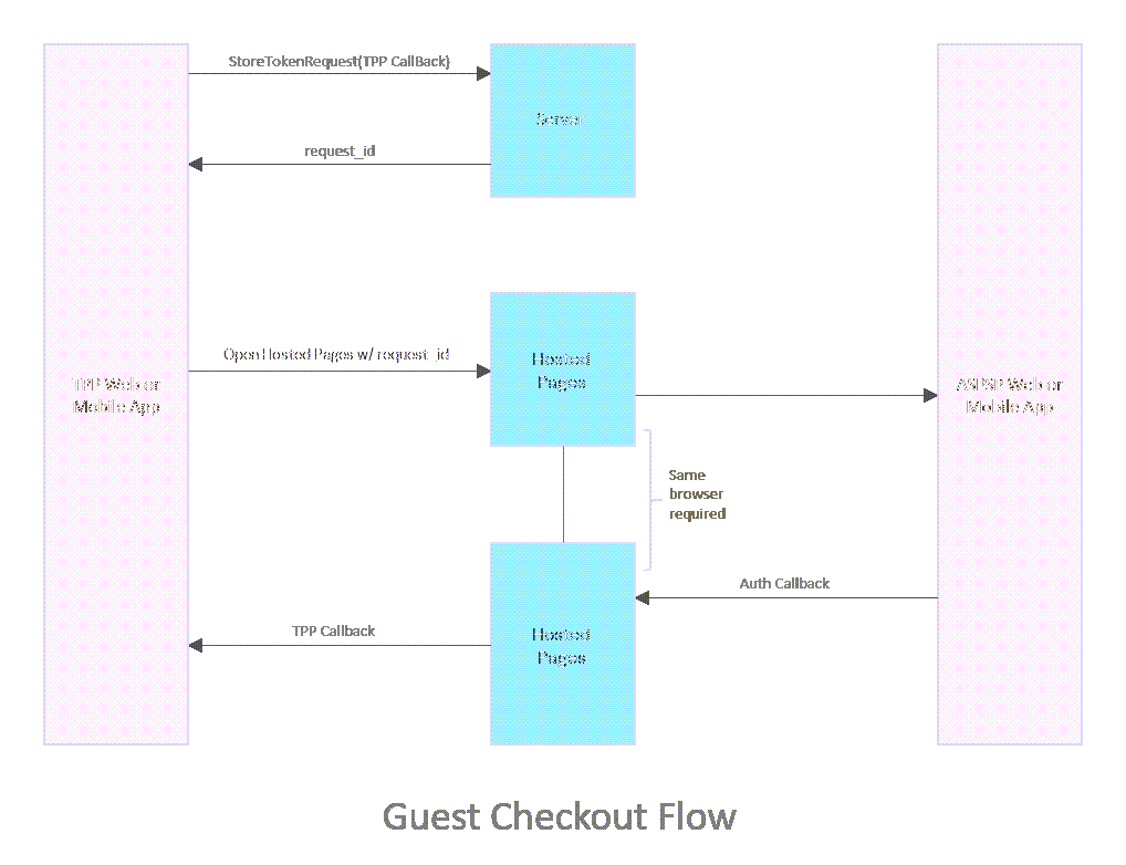 2. The TPP redirects the requestId to the Token.io Hosted Pages, which then "guides" the user to the ASPSP for PSU authentication.