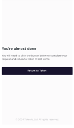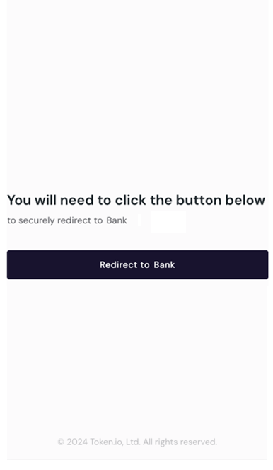 Clicking this redirect button ensures the user is sent back to the app they started in if processes at Token.io take too long, or to avoid an issue with automatic redirects.